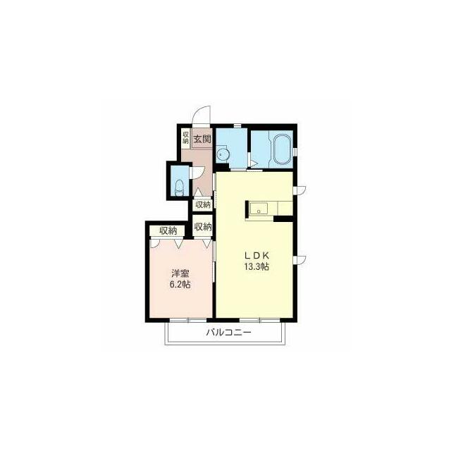 | 間取り | 1LDK(LDK13.3帖 洋室6.2帖) | 主要採光面 | 南東 |