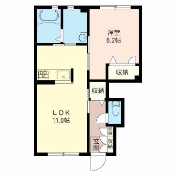 1LDK(LDK11.0帖 洋室6.2帖) |
