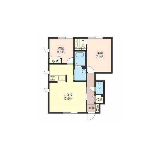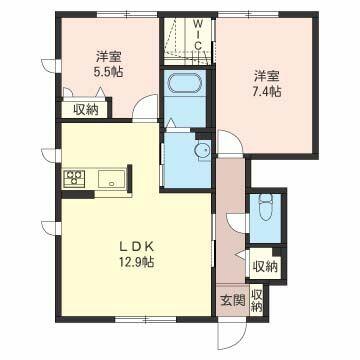| 間取り | 2LDK(LDK12.9帖 洋室5.5帖 洋室7.4帖) | 主要採光面 | 南 |
